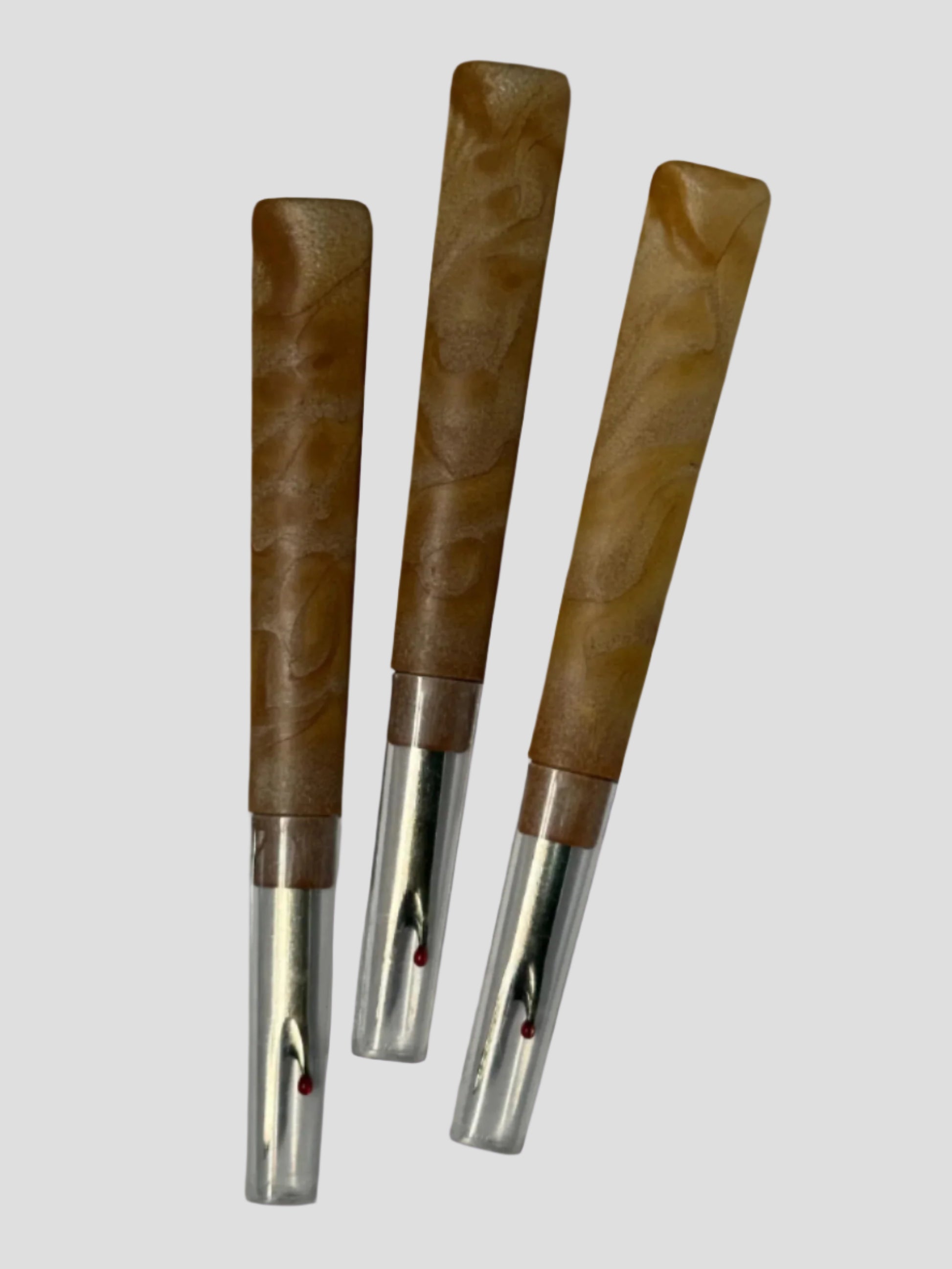 Abre ojal de madera con tapa de plástico.